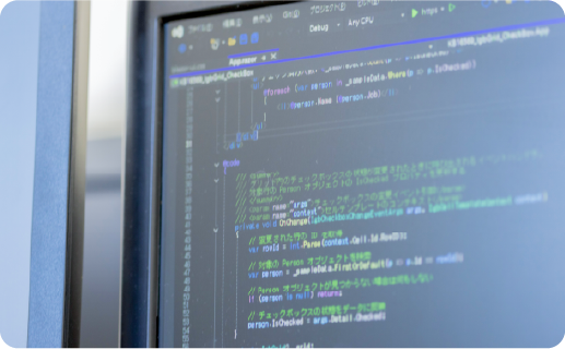 製造設備の生産ラインなどをプログラムによって制御し、安定した製品づくりを支えるシステムを提供しています。新規開発から改修まで、お客様との打合せを重ねながら、ご要望をシステムに反映していきます。